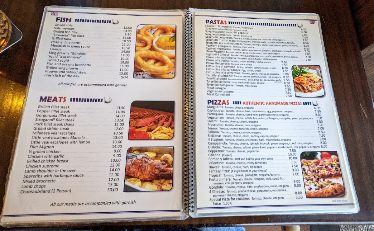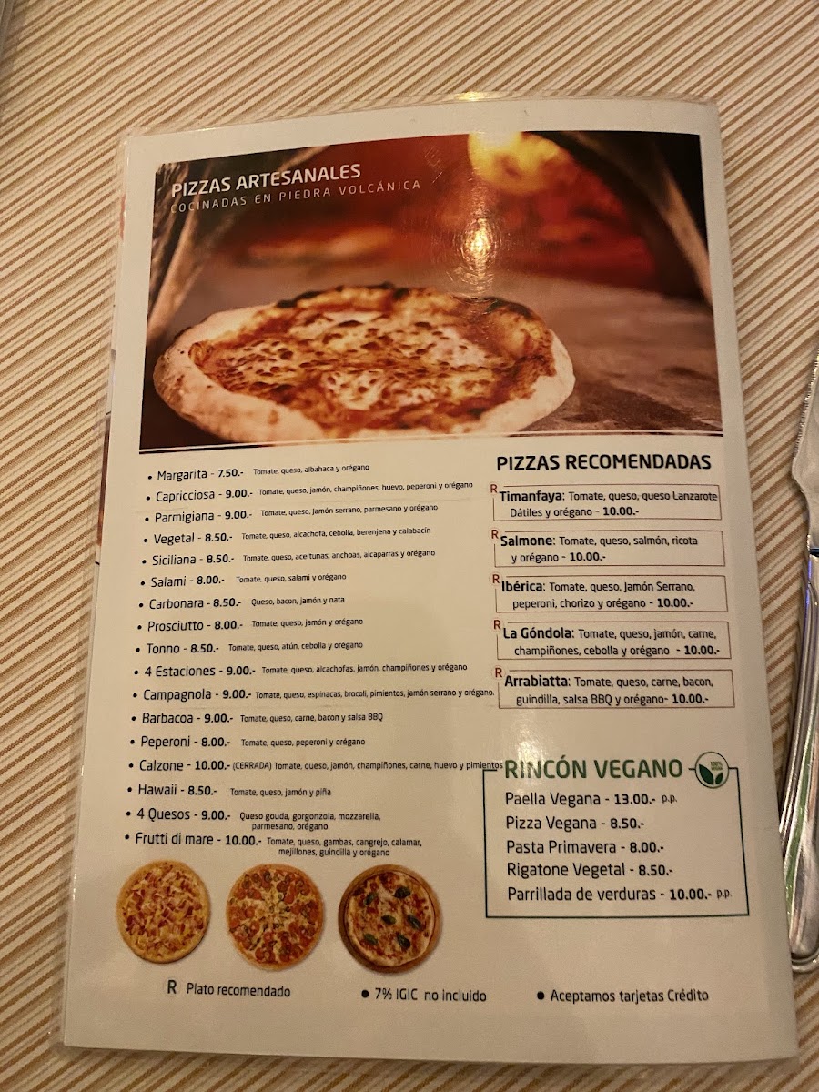 The menu at La Gondola - Las Palmas offers a variety of Italian and Mediterranean dishes, with a focus on pizza and traditional regional specialties. Visitors can expect options including starters, main courses, and beverages that cater to diverse dietary preferences.